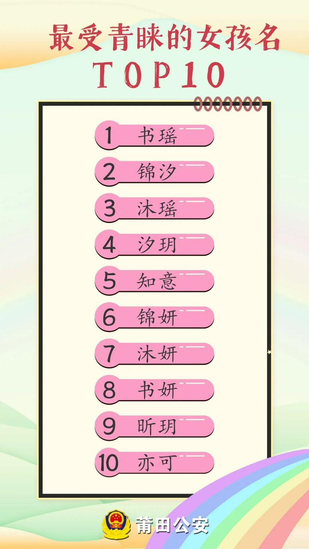 在2025年莆田市户籍新生儿中 “沐宸” “书瑶” 分别成为最受莆田家长 青睐的男孩名、女孩名Top1