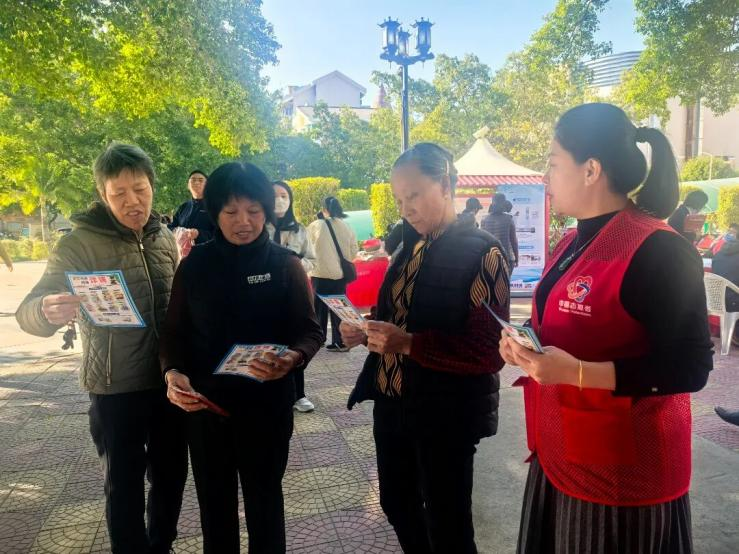 漳州市南靖县妇联组织巾帼志愿者向过往群众科普反诈知识,提醒群众提高警惕、守好“钱袋子”。