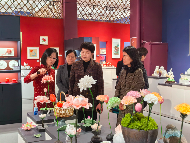 在巾帼巧匠曾巧霞工作室,陈红详细了解传统技艺传承、女性创业扶持等情况,对以非遗文化为辐射、带动周边女性就业创业的做法表示肯定。她鼓励巾帼巧匠发挥巾帼创业示范引领作用,吸引更多女性投身文化创业,在传承优秀传统文化的同时实现自我价值。 |