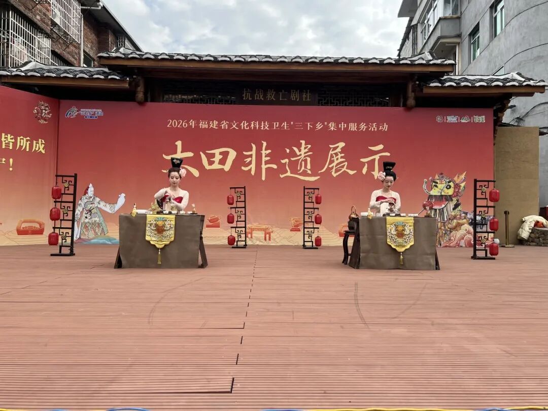 来自福建京剧院、福建人民艺术剧院、省杂技团等单位的专业演员为观众带来京剧武戏集锦、山歌表演、梅林戏表演、杂技、歌舞表演、情景朗诵、喜剧小品等文艺演出,让观众领略中华传统文化的气韵之美,感受福建发展的强劲脉搏。 活动现场还设置了非遗展示区,全面展示“大田板灯龙”、汤泉花灯、大田傩狮、大田非遗小吃、大田美人茶艺等非遗特色魅力,传递非遗蕴含的乡土情感与人文精神。 省“三下乡”活动组委会聚焦服务需求,组织服务单位107家、省市县乡四级志愿服务队共800余人,现场开展各种服务项目134项。内容包含社会主义核心价值观主题宣传、“福”文化宣传、“闽人智慧”宣传、“八闽书房”智慧阅读平台服务推广、捐赠物资、书赠春联、灯谜大竞猜、传统文化技艺体验、VR科普体验、机器人表演、全家福拍摄、义诊服务、常见慢性病防治科普宣传、气象科普趣味互动等各类交互体验服务。