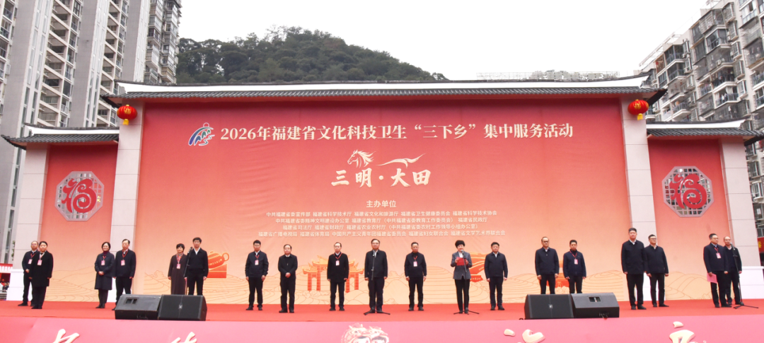 2月10日,2026年福建省文化科技卫生“三下乡”集中服务活动在三明市大田县均溪镇举行。省委常委、宣传部部长张彦出席并宣布活动启动。