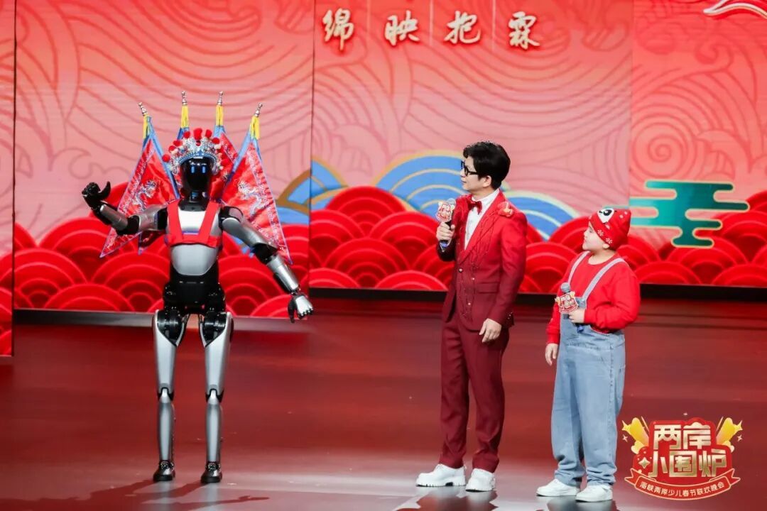 机器人“AI海”作为“两岸小围炉”舞台上首次使用的机器人主持人,与真人主持人阿海、小主持人组成跨次元主持团,其机智的临场反应,展现了科技在文化艺术领域的创新应用。