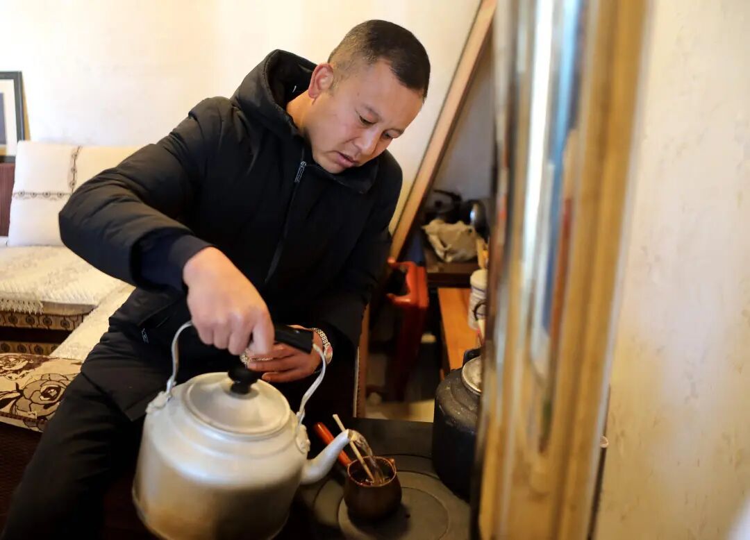 2月10日,元古堆村村民马海龙在家里煮罐罐茶。新华社记者 王朋 摄 “新年要有新气象。习近平总书记给全国人民拜年时祝大家伙儿龙马精神。这股精神头,咱元古堆村村民更不能丢,得像总书记那年叮嘱的那样,‘把日子越过越红火’。”马海龙说。 “我的甘肃老家,山山水水的归程,再没有坑坑洼洼……”“土味春晚”正式开演。农舍前,有村民挥笔写下春联,“春盈渭水同致富,福临陇原共振兴”,横批“国泰民安”。 一棵树见证坚守:“我扎根的地方,就是中国” 春寒料峭,北部战区陆军某旅训练场上,一场以边境遭袭为背景的应急处突演练正在进行。 室外气温已跌至零下37摄氏度,官兵们呼出的水汽在面罩上凝结成霜,然而严寒撼不动铮铮铁骨。抵近侦察、火力压制、人员抓捕,在侦察连代理连长吴景伟指挥下,处置过程比以往又快了些。 春节将至,连常在边境线附近放牧的牧民也赶着羊群回去过年了,但在这里,节日战备的紧张丝毫不减。 “兴安岭穿上洁白的衣裳,紧握钢枪守卫着北疆……”训练间隙,一位老班长唱起《主席来到我身旁》,将吴景伟的思绪带到上一个马年春节来临之际。 2014年1月,习近平主席来到内蒙古阿尔山,顶风踏雪慰问在边防线上巡逻执勤的官兵。当时只有19岁的吴景伟正在巡逻队伍中。习近平主席一身迷彩走上前来,摘下手套同巡逻官兵挨个儿握手。 “习主席问了好多问题,我激动得说不出话来,还是身旁老兵精神饱满地一一作答。”临别合照时,吴景伟紧张得直往后躲,习近平主席连声招呼他靠近一些。