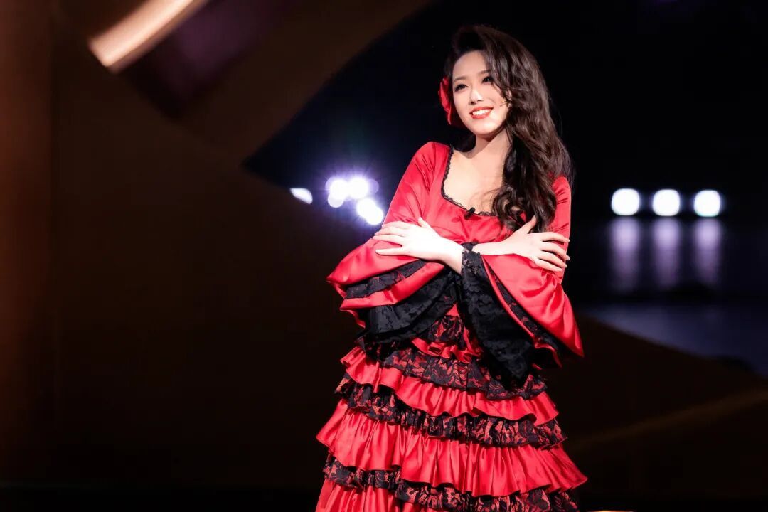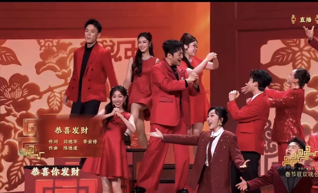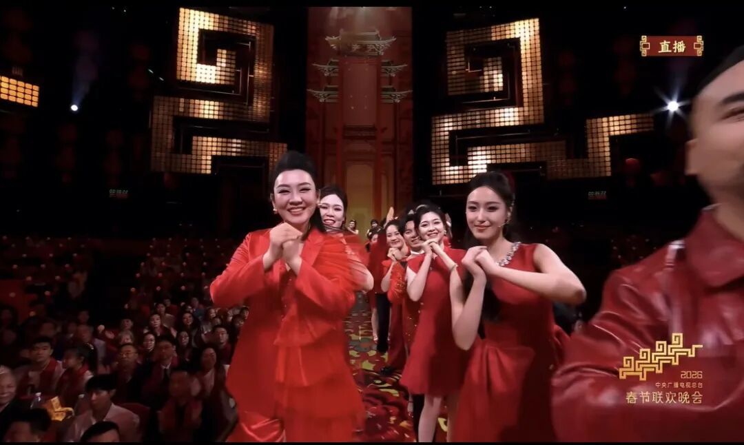 左二为郑心烨 郑心烨表演的节目是 多唱法创编歌曲《恭喜恭喜》 节目在延续传统贺岁主题的同时 大胆融入流行音乐节奏与现代舞台编排 对于长期专注于美声演唱的郑心烨来说 不仅是表演形式的转变 更是一次对自身艺术适应力的深度挑战