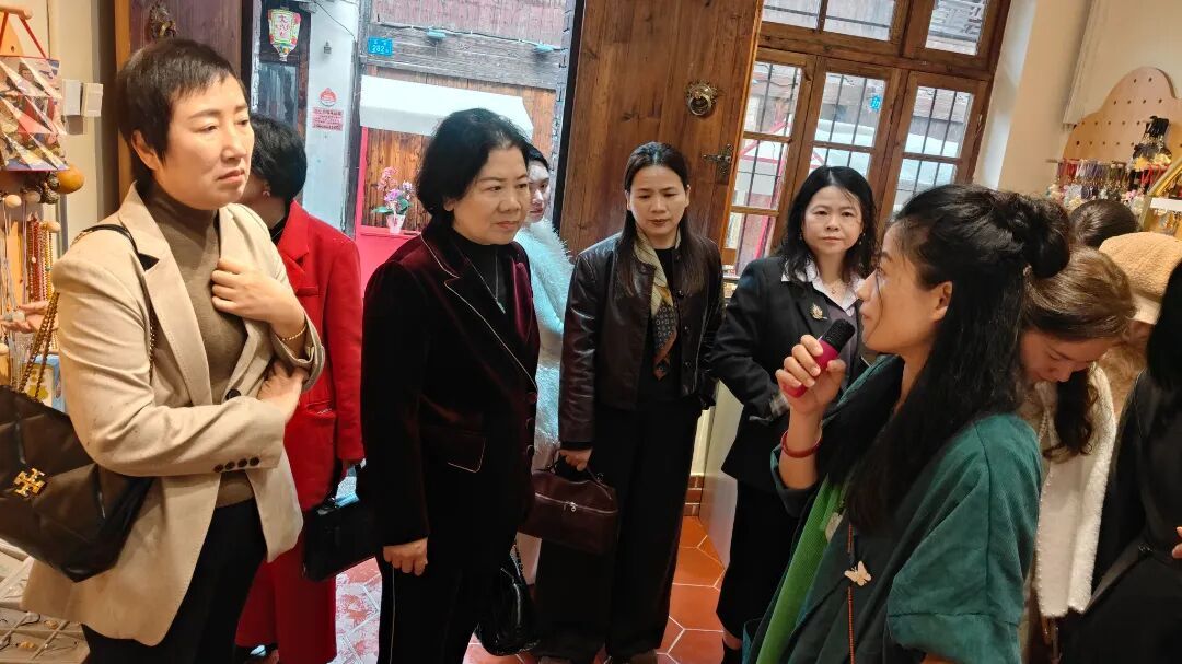 古街寻韵,凝聚奋进“她”力量 一步一景,一企一品。女企业家们踏雨而行,先后走进玛祖婆非遗文化馆、莆田市工艺美术城展厅、湄洲女礼业、海和惠、莆恬宝妈、黄家荟芦荟、莆阳里等特色门店、展区。从非遗文化的创新转化,到传统工艺的匠心坚守;从地域文创的商业表达,到特色农业的产业链延伸,每一处都能感受到莆田女性在创新创业、文化传承、产业升级中的担当与风采。