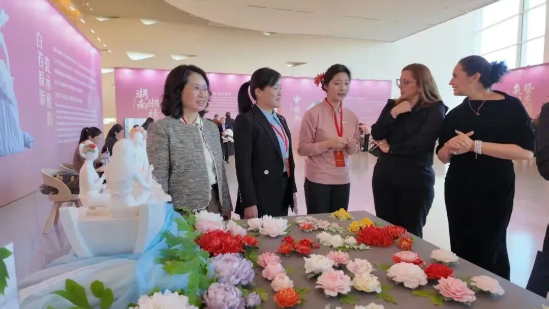 在技艺体验区,林灵月、曾素妹等女工艺大师亲自指导中外嘉宾揉捏塑形。一团瓷泥在指尖化为花瓣,让参与者惊叹不已。一位国际友人体验后动情地说:“德化白瓷的纯净,让我想到女性的坚韧与温柔。指尖触碰瓷坯的一瞬,是与艺术的心灵对话。” 活动中,由全国三八红旗手、90后福建省工艺美术大师许丽枝创作的陶瓷小马、小熊猫,以及德化瓷烧制技艺非遗传承人曾素妹的瓷花香薰等作品,作为节日礼物赠予中外嘉宾,传递了美好祝愿。 花香传情,瓷韵寄意 以非遗为媒 让世界看见中国女性的智慧与风采 让中华优秀传统文化 在全球文化交流中绽放光彩 |