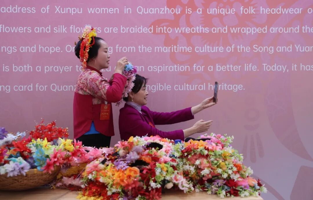 3月6日,由中华全国妇女联合会主办的纪念“三八”国际妇女节中外妇女招待会在北京隆重举行。来自福建泉州的蟳埔簪花与德化白瓷两项国家级非物质文化遗产携手亮相,以“花香瓷韵”的独特魅力,向中外嘉宾展示中华优秀传统文化的深厚底蕴与新时代女性的匠心风采。