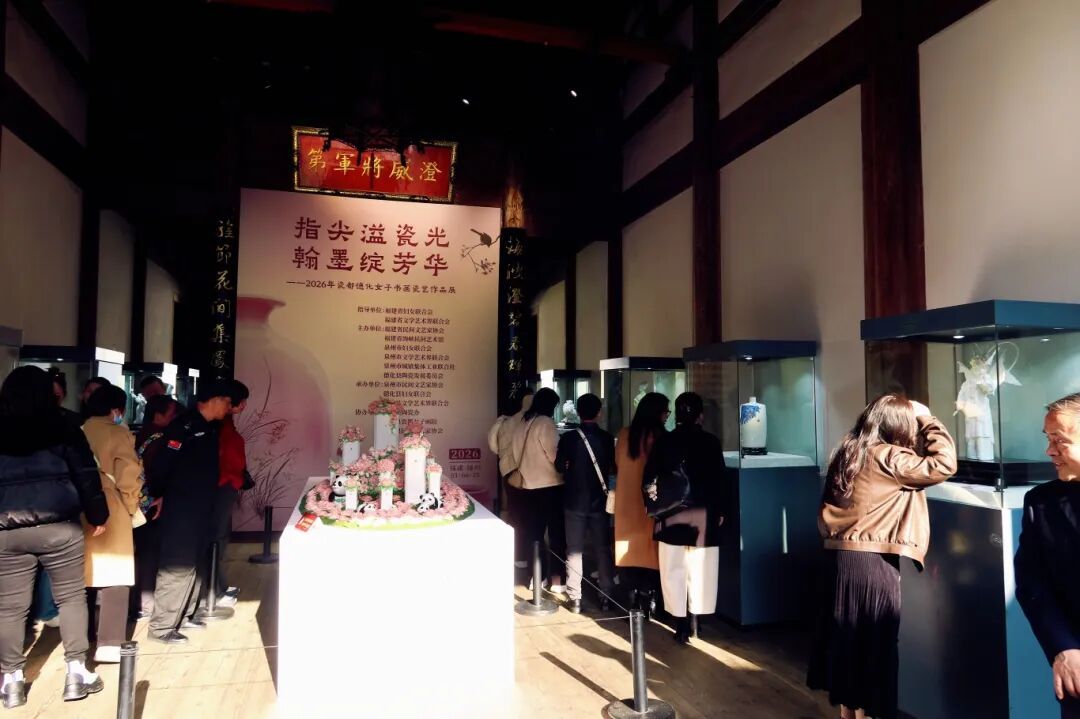 德化白瓷以“中国白”的温润质感蜚声中外。本次展览以“指尖溢瓷光 翰墨绽芳华”为主题,汇聚40位德化本土优秀女性书画艺术家、陶瓷艺术家近100件(套)精品力作,作品门类齐全、风格多样,涵盖传统书画、瓷塑、瓷花、瓷画、现代创意陶艺等多个领域,也融入生活美学表达与当代艺术创意,将德化白瓷“白如雪、润如玉、透如绢”的独特魅力展现得淋漓尽致。开展首日便吸引了众多陶瓷爱好者、市民群众与游客前来观展。