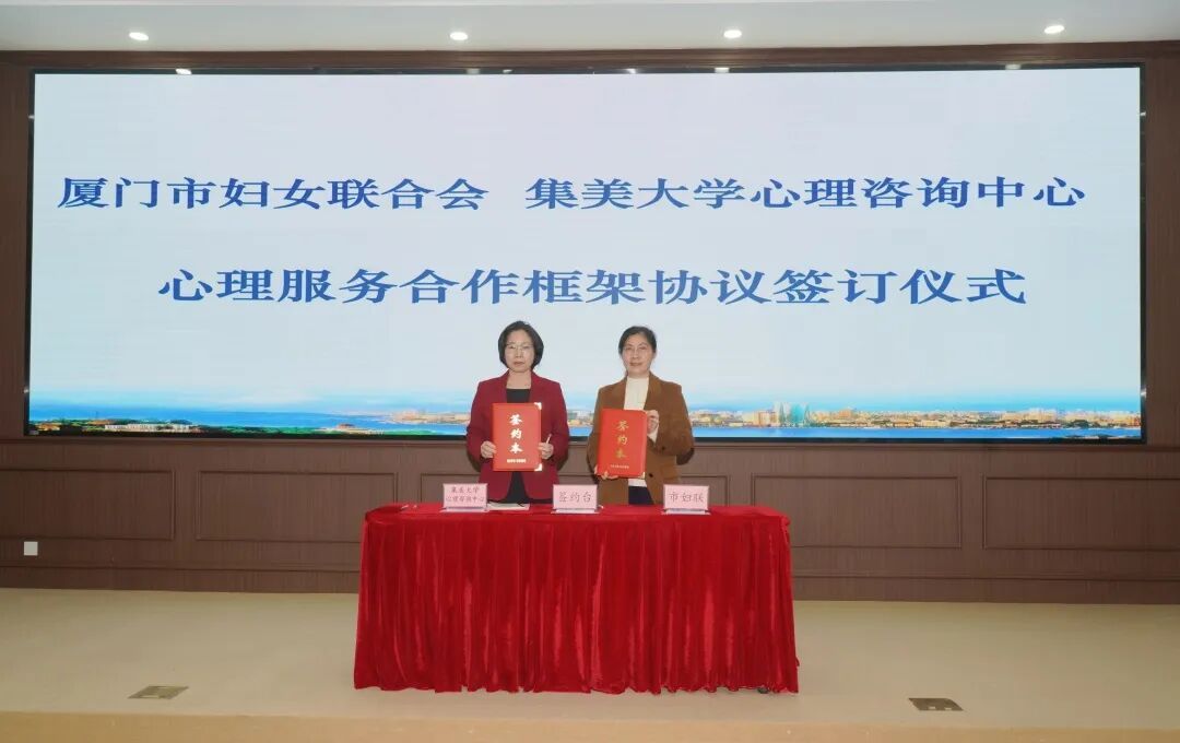 王卫花介绍了厦门妇女儿童权益保障工作情况,希冀通过以案释法、以案明理,让更多妇女群众学会运用法律武器维护自身合法权益。为保障妇女儿童身心健康,筑牢家庭幸福根基,厦门市妇联和集美大学心理咨询中心整合妇联服务资源和高校心理学科专业优势,现场签约了《关于妇女儿童心理健康服务合作框架协议》,双方将围绕妇女儿童心理健康服务等方面开展深度合作,为妇女儿童权益保障注入“心”动能。