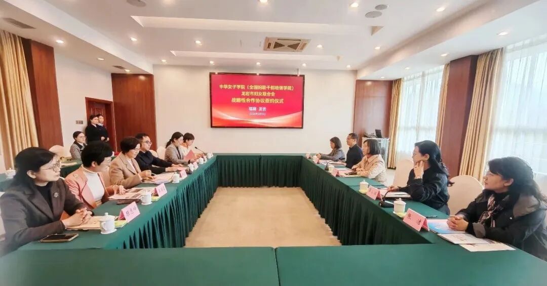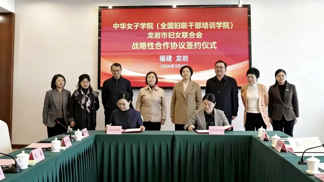 3月10日,在红色圣地古田,中华女子学院(全国妇联干部培训学院)与龙岩市妇女联合会正式签订战略性合作框架协议。中华女子学院(全国妇联干部培训学院)院长刘利群、副院长薛小丽、党委常委、宣传部部长叶水平,福建省妇联党组成员、副主席卓晓銮,龙岩市委副书记杨溢,龙岩市妇联党组书记、主席林艳,以及中华女子学院,省、市妇联等有关人员参加了签约仪式。这一协议的签署,标志着双方正式开启更深层次、更广领域的合作新征程,为妇女儿童事业的蓬勃发展注入澎湃动力。