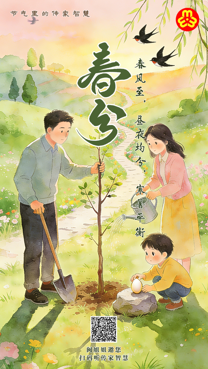 春启蛰、夏鸣蝉、秋露白、冬雪藏 二十四节气是古人镌刻的时光韵律 更是中国人血脉相传的传家密码 我们总说“传家” 传的从来不是万贯家财 而是藏在烟火日常里的生存智慧 处世分寸与家国情怀 而节气,正是这份智慧最生动的载体 为此,闽姐姐开设 “节气里的传家智慧”专栏 愿伴大家循着节气脚步 探寻闽人智慧里的顺应与坚守 让春有盼、夏有安,秋有喜、冬有暖 节气相伴,家风同行 不负时光,不负传承 今天,就让我们一起感悟 二十四节气之“春分”的传家智慧
