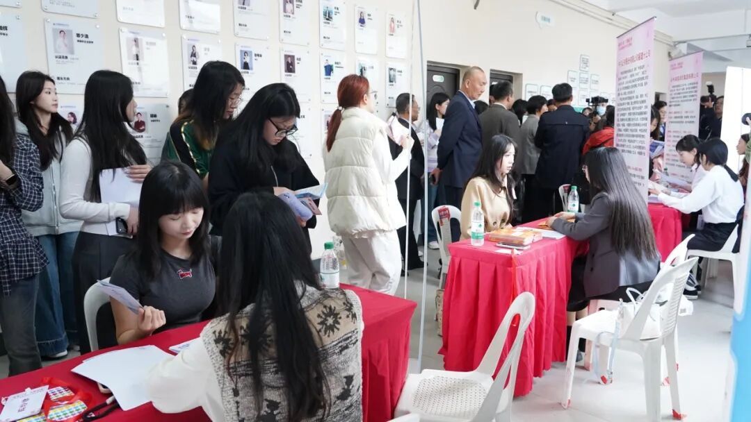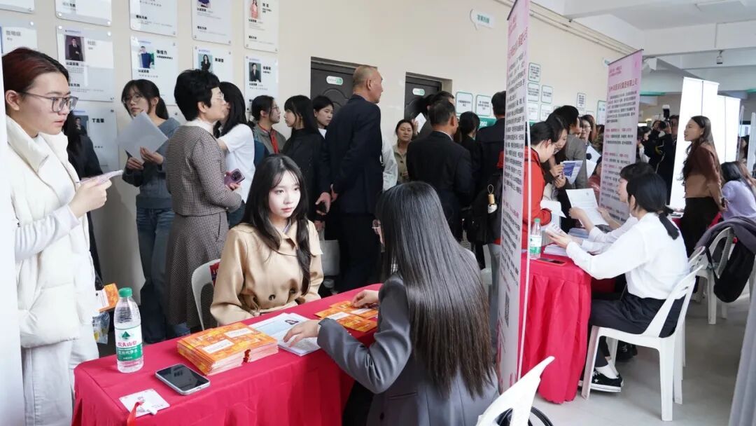 近1500名女大学生到场参与,2000名网友云端应聘,43家优质企业带来1231个岗位,500余人现场达成初步意向,政策咨询、职业规划指导、AI人岗匹配、金融支持服务、法律答疑、形象指导、免费拍摄证件照、健康义诊等公益服务惠及800余人次,干货满满,温暖加倍! 名企云集“职”为她 招聘会现场气氛热烈,求职者络绎不绝。企业展位前,女大学生们与用人单位代表深入交流,详细了解岗位需求、薪资待遇、工作环境、晋升通道等信息。岗位涵盖金融、教育、科技、文化、医疗、现代服务等多个领域,既有技术研发、行政管理等传统岗位,也有文创设计、新媒体运营、AI应用等新兴职业,充分考虑了女性求职者的专业背景与职业倾向。现场还设置了企业宣讲环节,福州学大教育、福州九色鹿培训学校等企业围绕企业文化、发展蓝图,以及针对女性员工的培养体系和晋升通道进行介绍,帮助求职女生更好了解行业发展前景与个人成长空间。