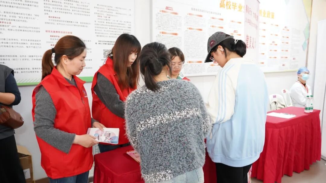 健康义诊区人头攒动,2名中医师现场坐诊,提供免费健康咨询、基础检查、体质辨识及调理建议,并发放健康科普资料。通过专业的中医健康指导服务,帮助求职女生在奔波应聘的同时关注自身健康,以更好的状态迎接职场挑战。