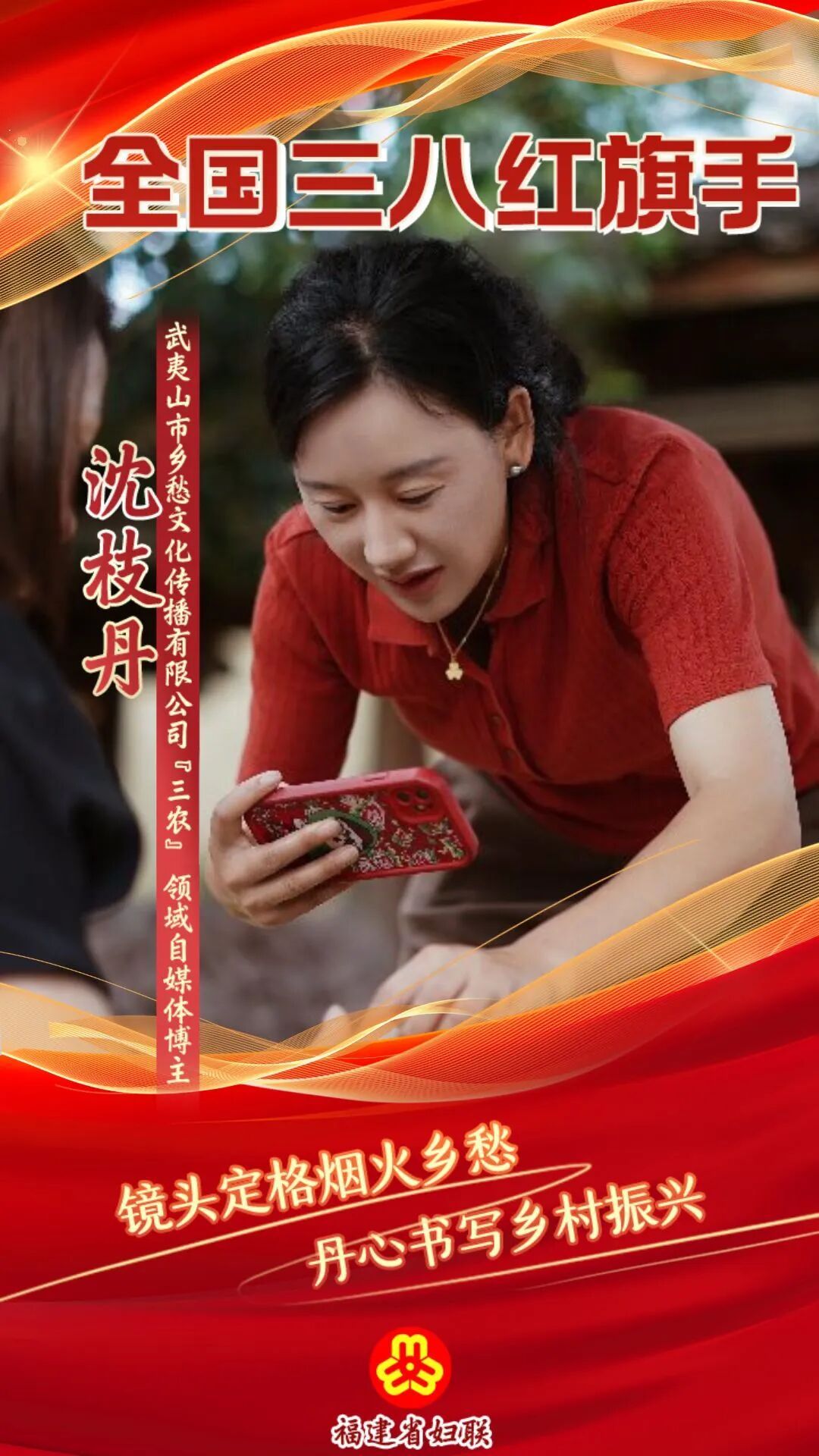 榜样如炬,向光而行 群芳奋进,八闽花开 她们,在灯火深处守护万家 在三尺讲台孕育桃李 在乡野田间耕耘振兴 在科研前沿潜心求索 每一个她,都在用自己的方式 为时代添一笔亮色 新程启航,逐梦奋进正当此时,闽姐姐特别开设“启新程·‘她’逐光”专栏,展播我省获评2025年度全国三八红旗手标兵、全国三八红旗手、全国三八红旗集体、全国巾帼文明岗先进典型。让我们循着“她”的足迹,感受八闽女性昂扬向上的精神风貌,激励更多姐妹在追光路上绽放最美芳华! 今天,跟着闽姐姐一起走近 全国三八红旗手 武夷山市乡愁文化传播有限公司 “三农”领域自媒体博主 沈枝丹