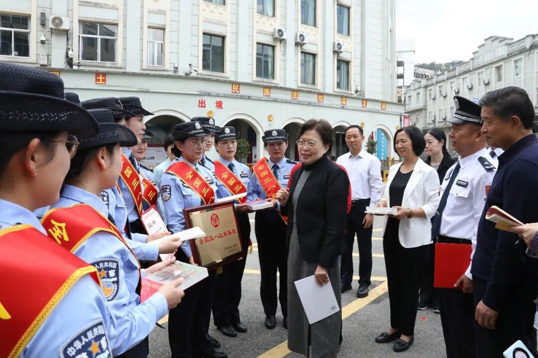 黄晓薇走进中缅妇女之家、边防小学、爱心妈妈驿站、妇女儿童发展中心,详细询问新兴领域妇联服务涉外女职工、爱心妈妈关爱跨境儿童、妇女民间友好交往等工作,要求认真总结边疆妇联工作特色做法,通过常态化互访、探索“小而美”民生项目落地等,持续促进民心相通。在出入境边防检查站,她将三八红旗集体奖牌送到执勤女队员手中,称赞她们是“守护国门的靓丽风景线”。驻足民族团结园、妇女爱国主义教育基地、非遗工作室,她叮嘱要深挖讲好巾帼英雄故事、少数民族妇女发展故事,引领各族妇女在感悟幸福生活中铸牢中华民族共同体意识。
