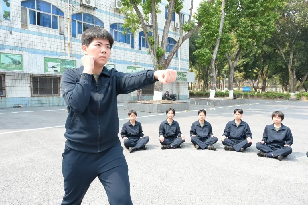 参加漳州市役前教育(右1) 千锤百炼,全力以赴终圆梦 为了让每一项考核指标都达到最优,陈淳婧开启了全方位的科学训练。 得知她第四次失败后,学院篮球队学长为她量身定制训练计划,利用篮球训练中的折返跑,提升爆发力和心肺能力;队友们也热心指导她跳远技巧,轮番陪她跑步。 在日复一日的练习中,她的跳远成绩从1米52稳步提升到1米76,每一个进步,都凝聚着她的汗水与坚持。即便是在学院的最后一个月,队友们仍不放弃,带着她到健身房锻炼身体,为的是不再经历第五次落选。