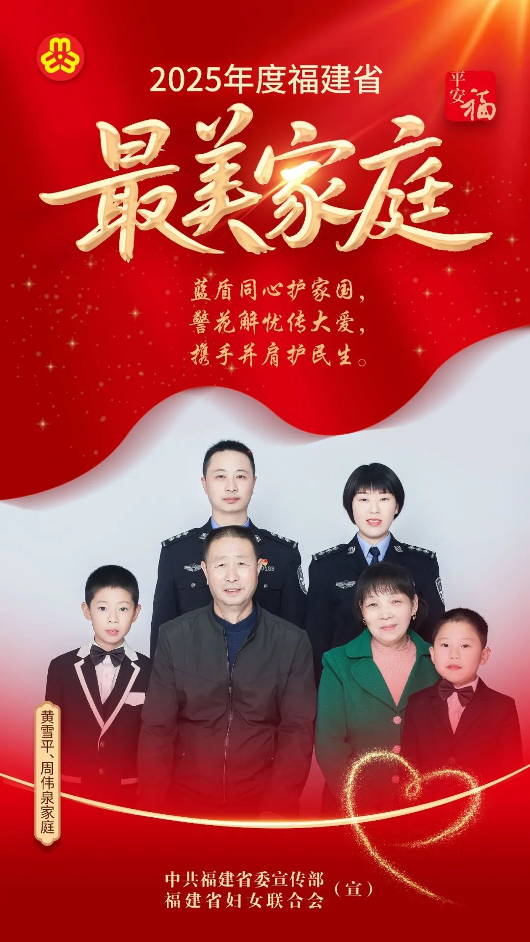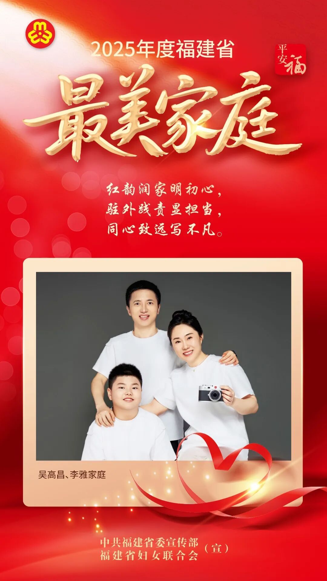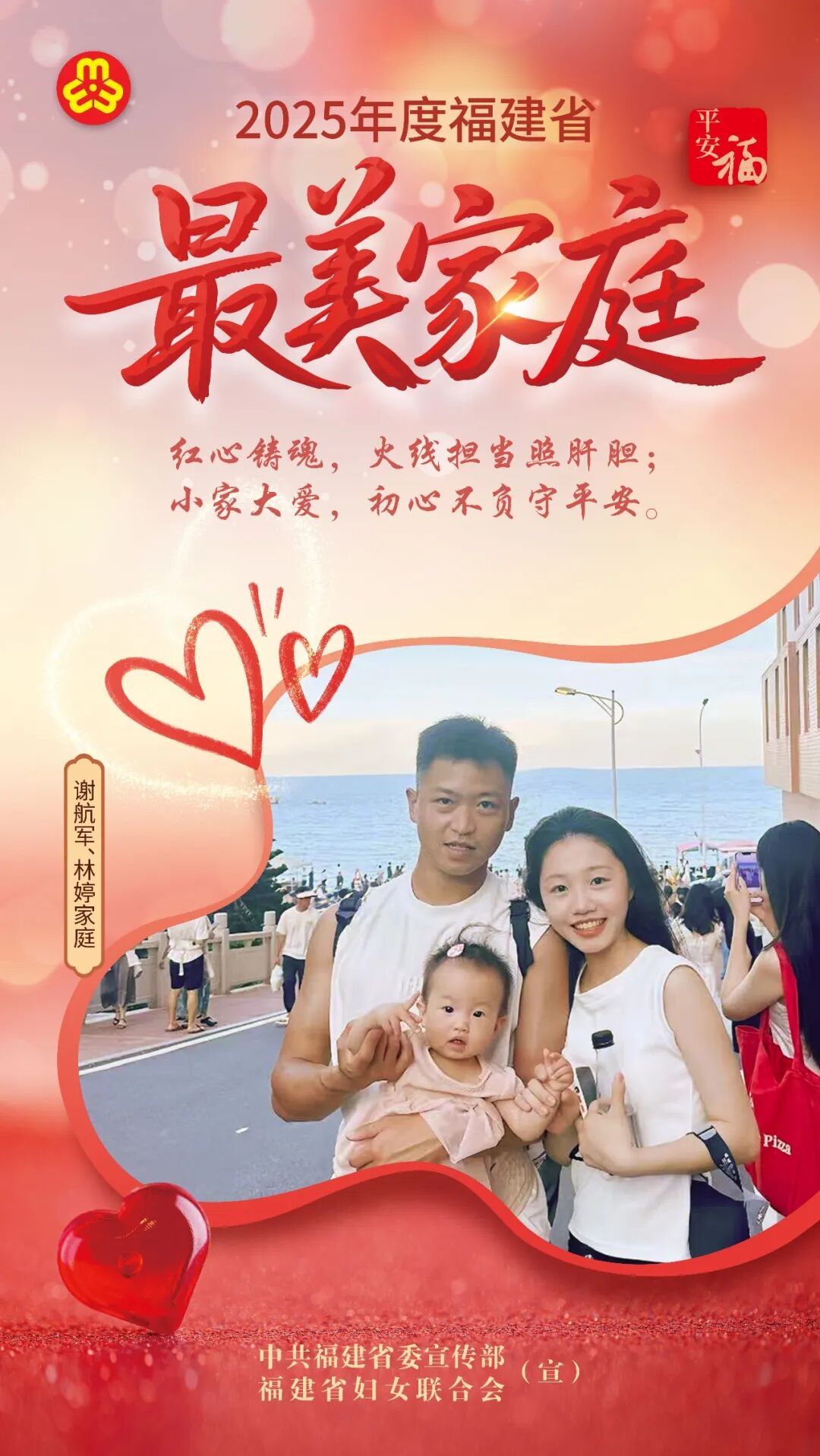 他们 是家国情怀的传承者 是相亲相爱的践行者 是向上向善的引领者 是共建共享的示范者 生动诠释新时代家庭文明的最美模样 近日,省委宣传部、省妇联联合宣传选树 2025年福建省“最美家庭”100户 让我们以“最美家庭”风采录记录最美、呈现最美 以小家之美,筑大家之暖 谢航军、林婷家庭