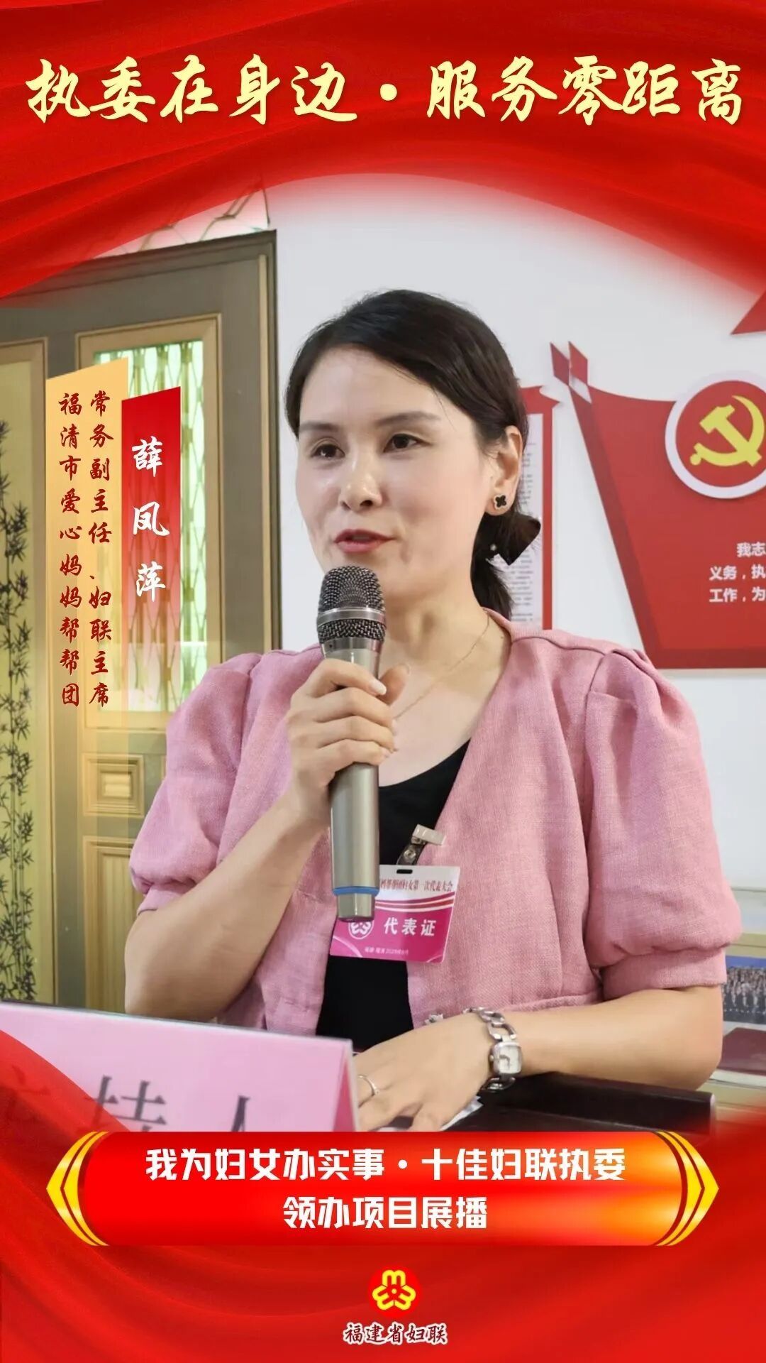 她是谁? 薛凤萍是福清市爱心妈妈帮帮团常务副主任、妇联主席。她常年与丈夫走村入户提供理发、餐饮服务,在基层一线目睹了困境留守儿童缺少陪伴、生活拮据、情感缺失的困境。2017年4月,在福清市妇联指导下,薛凤萍牵头联合几名热心姐妹,发起成立福清市爱心妈妈帮帮团,创新打造“124+N”困境儿童关爱模式,集结各界女性力量,用细腻温情为困境儿童撑起成长保护伞,切实履行妇联执委服务妇女儿童的使命职责。 干了啥? 凝聚巾帼力量,搭建服务阵地。薛凤萍和姐妹们主动奔走号召,吸纳党员、企业家、教师、医生、理发师、女大学生等,凝聚一支组织架构清晰、责任分工明确的“爱心妈妈”团队。同时打造“线上+线下”双阵地:线上组建“一呼百万爱心妈妈群”,高效发布需求信息、招募志愿者;线下盘活上薛村自建房,打造爱心妈妈驿站,作为开展亲子陪伴、科普益智等儿童关爱活动的阵地,也为爱心妈妈提供交流学习的空间,夯实服务根基。