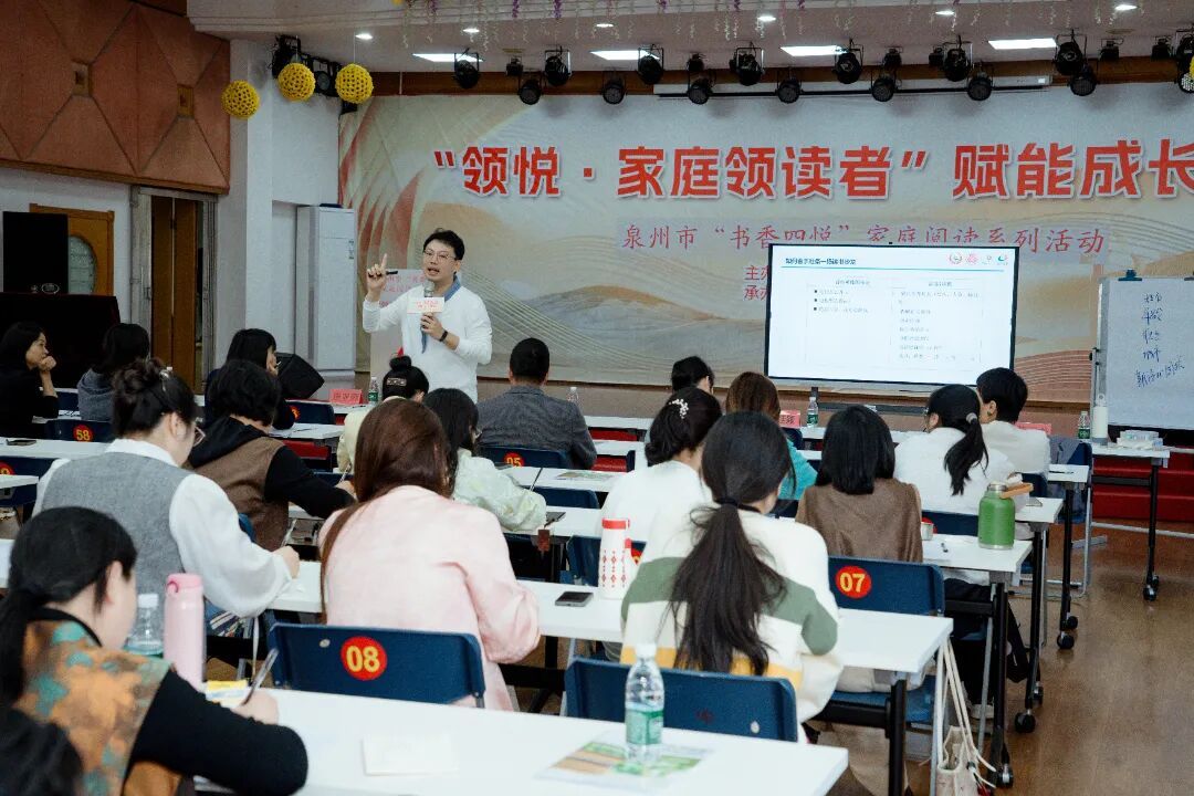 泉州妇女儿童心理服务中心主任黄天龙围绕阅读推广能力、阅读指导能力、资源运营能力三大模块开展专题讲座,区分不同群体的指导重点,分享阅读指导技巧。