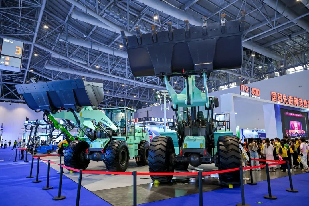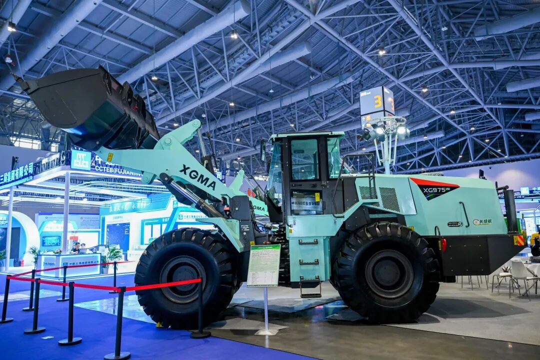 国贸智能制造馆 领略硬核智造风采 国贸智能制造馆的展区中央,中国首台甲醇动力装载机XG955KM以“绿色巨兽”之姿吸引全场目光。