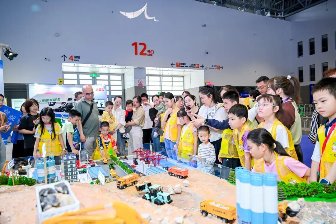 “这是响应国家‘双碳’战略的机械,采用环保甲醇动力技术,污染物排放比柴油大幅度减少。”随着工程师的细致讲解,孩子们争相凑近,踮起脚尖观察机身细节,亲手触摸这份属于中国智造的“硬核力量”,真切感受新能源科技的独特魅力。 儿童友好伴成长 科技热爱在心中生根 “不仅是见识,更是启蒙!” “孩子全程兴致勃勃,回家后主动查阅资料,说要设计自己的‘智能机器人’。” 家长们纷纷表示,这次活动让孩子零距离接触工业黑科技,在心中种下了科技与创新的种子,这样的实践教育意义深远!