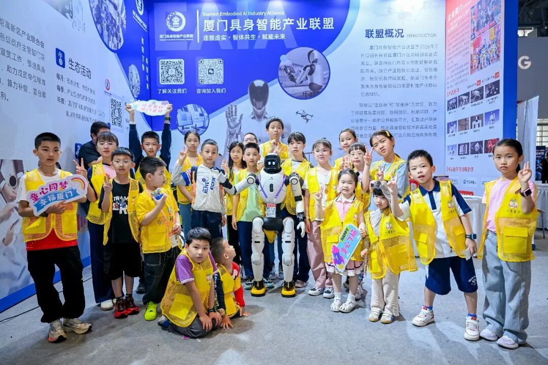 “这是真的熊猫还是给机器狗穿了衣服呀?” “它会跳舞或者功夫吗?” 厦门具身智能产业联盟展位前,行走中的人形机器人和正在蹦跳的“熊猫”机器狗成为全场的“人气王”。孩子们兴奋地与机器人对话、互动,亲身感受具身智能技术的魅力。 据工作人员介绍,这只人形机器人不仅“上知天文下知地理”,唱歌、跳舞、中国功夫更是样样精通;而它一旁正在蹦跳的“熊猫”其实是穿了“熊猫皮肤”的机器狗,除了“熊猫皮肤”之外,还可以给它搭配其他不同皮肤。