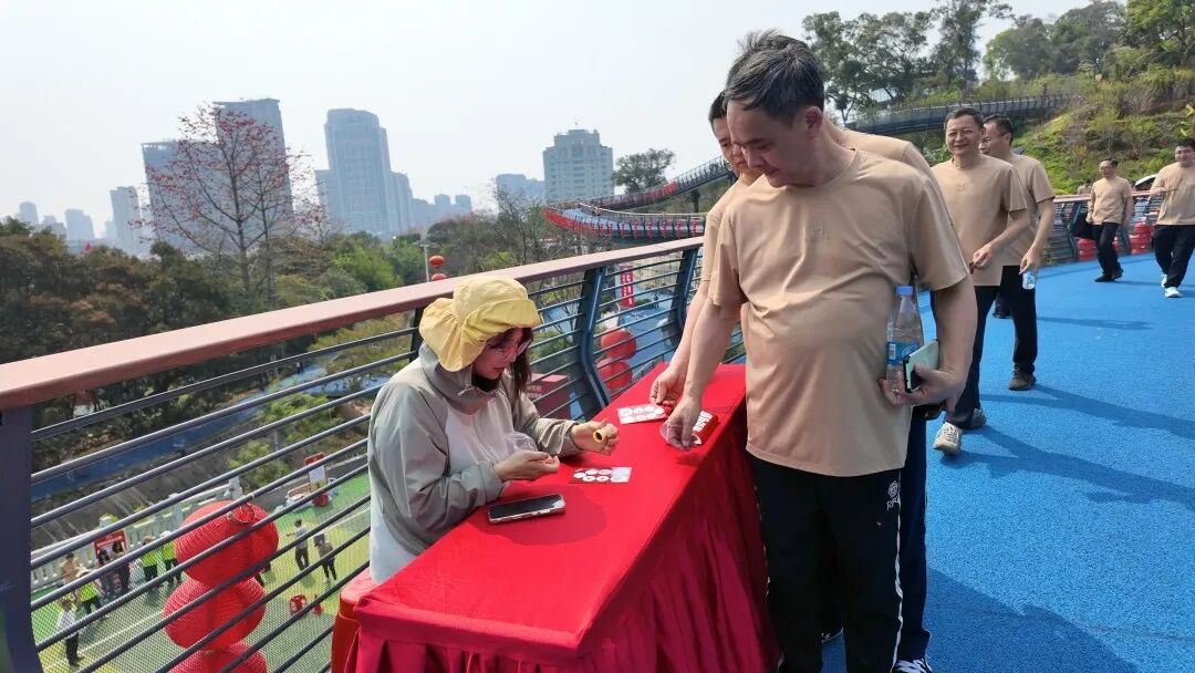 国安健步走打卡:林间漫步,安全同行 鸣枪启步后,参与者沿莆阳福道蜿蜒前行,在绿意盎然的生态绿廊中享受健步之乐,抵达打卡点盖章后返回篮球场。趣味打卡环节惊喜满满。