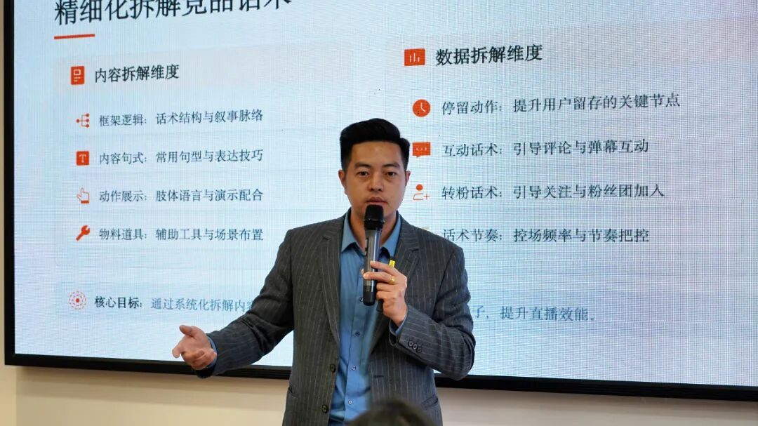 为帮助学员实现长效发展,此次跟踪服务特别增设直播后台数据分析与长期运营规划环节。接下来,钟伟、黄剑青两位讲师将分别针对两组学员,结合实操直播数据,细致讲解数据解读方法、粉丝运营技巧和长期发展规划,引导学员学会用数据指导直播运营,精准定位受众需求,提升直播转化率,为后续自主创业、带货增收打下坚实基础。